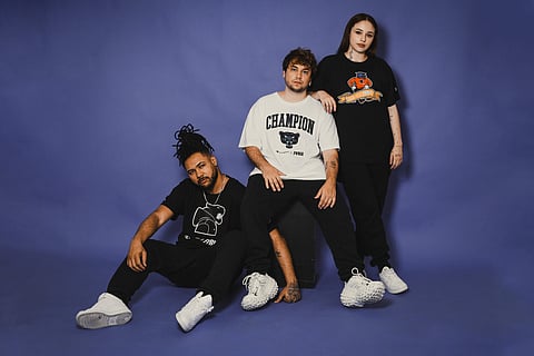 Para a campanha de Champion x FURIA, três membros da organização brasileira de e-sports foram escolhidos para estrelar as fotos: Arapê (@arape.malik), Brino (@brino) e Gabs (@gabsfreindorfer) apresentam todas as peças da coleção.